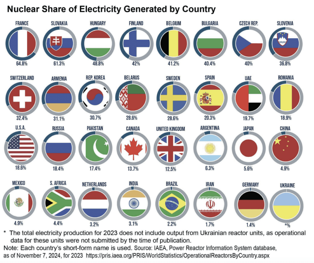 Interest in nuclear innovation is not new by any means. Countries around the world have spent decades investing in nuclear energy infrastructure and modernizing their portfolio. France is an undeniable leader with nuclear reactors generating 64.8% of that nation’s electricity. France currently has 57 nuclear reactors, making it the world’s largest net exporter of electricity due to the very low cost of generation. Since 2022, President Macron has moved away from the country’s previous stated goal of following Germany in nuclear divestment. Instead, France has choosen to invest in six new nuclear reactors by 2035.