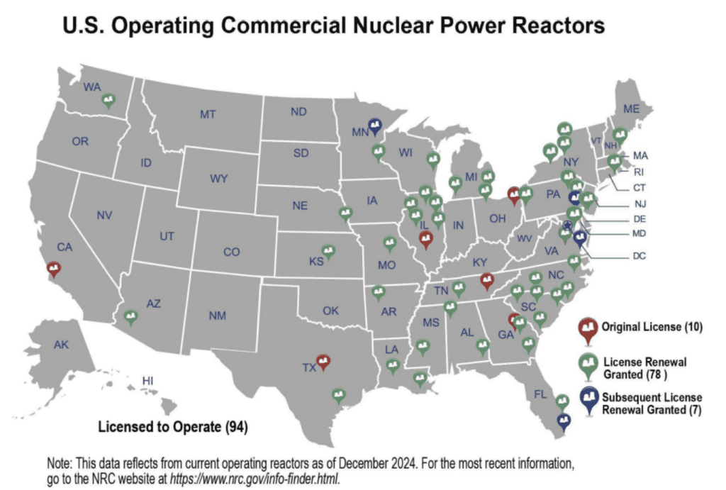 Currently, the United States boasts 94 operating commercial reactors across the nation, responsible for 18.6% of the country’s gross electricity share. Heavy majority of the existing plants are clustered in the East Coast and Midwest, with only 3 states – California, Washington, and Arizona – housing reactors in the West.