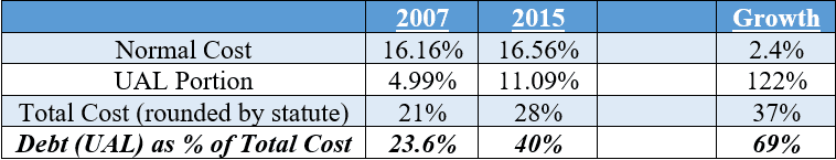 Clearly, not only the last rate hike, but every rate hike since 2007 went almost entirely to the unfunded liability — providing no benefit at all to the current members forced to pay this tax.